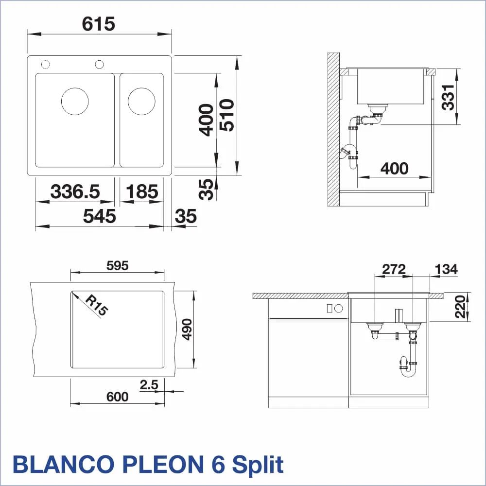 Гранитна кухненска мивка BLANCO, PLEON 6 Split